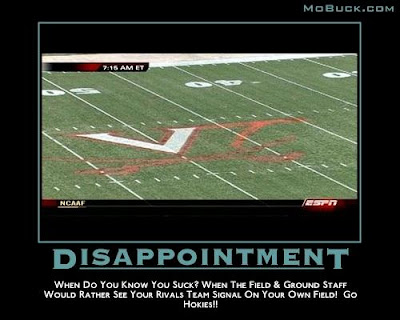 I know UVA considers UNC and Maryland to be big rivals, but let’s be honest, it’s the boys in Blacksburg they want to beat the most, and they haven’t done it since 2003. UVA has gone 1-7 against Tech since Groh came to the grounds. This is symptomatic of picking the wrong kind of talent, weak assistants and a poor development program. Groh has to turn this around (and quick) if he wants to stay in Charlottesville beyond 2009. He may have two ACC Coach of the Year awards under his belt, but he has no BCS appearances, no program defining wins and little respect around the state. THAT is the biggest reason why every Tech fan should love Al Groh.